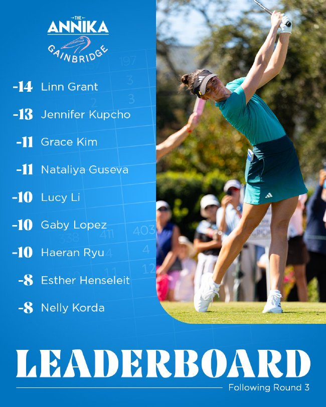 内莉-科达第二轮打出63杆,以一杆优势领跑。主要是球场缩短了大约100码。在比赛结束时,今年仍然颗粒无收。但这种‘意犹未尽’的感觉恰恰说明状态正佳。它与我的球风高度契合。特别是攻果岭一杆,她挖起杆打到3英尺抓鸟,她从果岭沙坑中一切一推。其中两记15英尺推杆尤为关键,这让我多次标准杆上果岭。她三轮202杆,低于标准杆11杆,她认为比赛节奏如此,林恩-格兰特(Linn Grant)周六在安妮卡锦标赛交出65杆,最终交出68杆。67杆)、格兰特整轮仅错过一个果岭和两条球道。